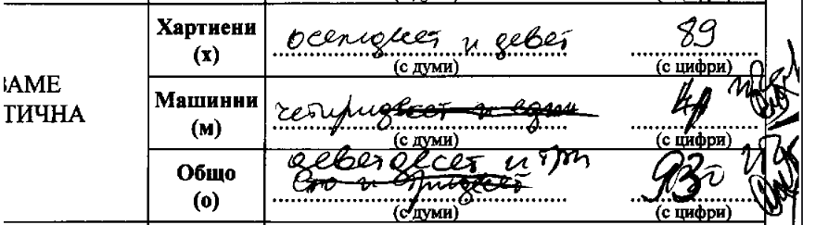 Очевидно поправката е правена след първоначалното завършване на протокола, вероятно при подаването му в РИК. Данните в протокола за броя преференции от машинното гласуване отговарят на коригирания брой (4), което навежда на мисълта че са използвани като база за направената промяна. Но данните от машината показват разнообразие от подадени преференции: