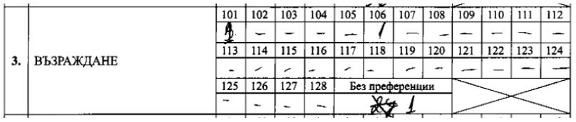 | 25. СОФИЯ 25 МИР | 3 | ВЪЗРАЖДАНЕ | 0 | Без преференция | 104 |