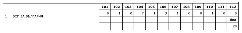 | 23. СОФИЯ 23 МИР | 3 | ВЪЗРАЖДАНЕ | 0 | Без преференция | 98 |